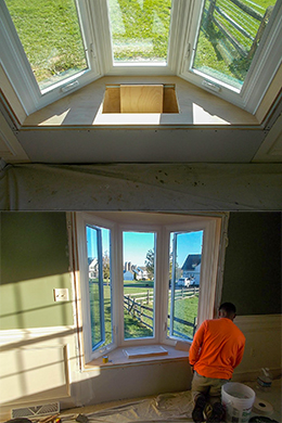 Next, we installed the bay window in the second opening, ensuring a seamless fit. We used top-quality materials, including installation, sheathing, and Tyvek on the outside, to ensure the windows were secure and energy-efficient. With the window set in place, we finished wrapping up the exterior, adding both durability and an aesthetically pleasing finish.