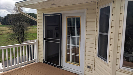 To address these concerns, we selected a new screen door with a wider, thicker frame, ensuring enhanced sturdiness. Additionally, the door came with excellent weather stripping, offering hope for keeping stink bugs out and allowing for enjoyable breezes during the spring and summer. To ensure the success of this project, we prioritized meticulous preparation. Our team carefully removed the siding around the door, inspecting the underlying structure to protect against moisture infiltration. This attention to detail laid the foundation for an excellent installation and long-term durability.