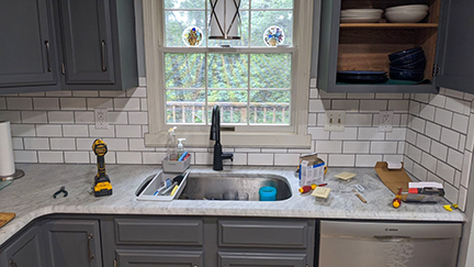 The backsplash is another area where we can enhance your kitchen's aesthetics. Using simple subway tiles with contrasting grout can create a timeless and elegant look. Careful planning is crucial for a seamless backsplash installation. Our team takes precise measurements and works on layouts to ensure the tiles fit perfectly, without the need for small, awkward pieces. By using dark gray grout, we add a touch of sophistication and highlight the beautiful white tiles.