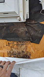 Similar issues were found on the other window. It seems that either the original installation was better, with proper sealant behind the nailing flange, or there was a previous repair on one side that wasn't performed on the other, leading to the current leakage. When the layers are not correctly aligned, leaks are bound to occur. For example, if the Tyvek had been two inches longer or if different measures were taken with the paper layer, the issue could have been avoided.
